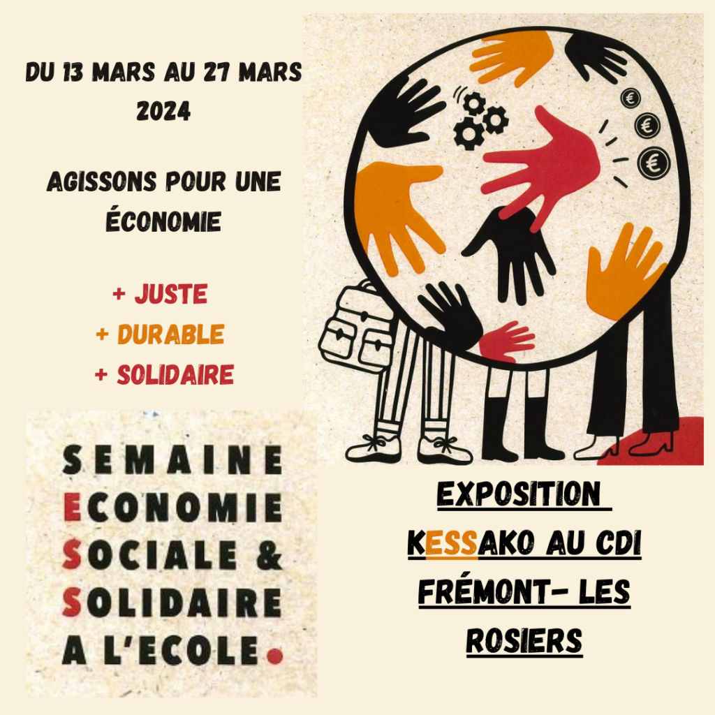 Du 13 au 27 mars visitez l’exposition organisée par les élèves de Terminale ST2S au CDI Frémont – Les Rosiers sur l’Economie Sociale et Solidaire.