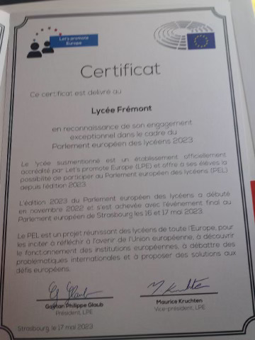 Accueil » Des élèves de Terminale du Lycée Frémont au Parlement Européen