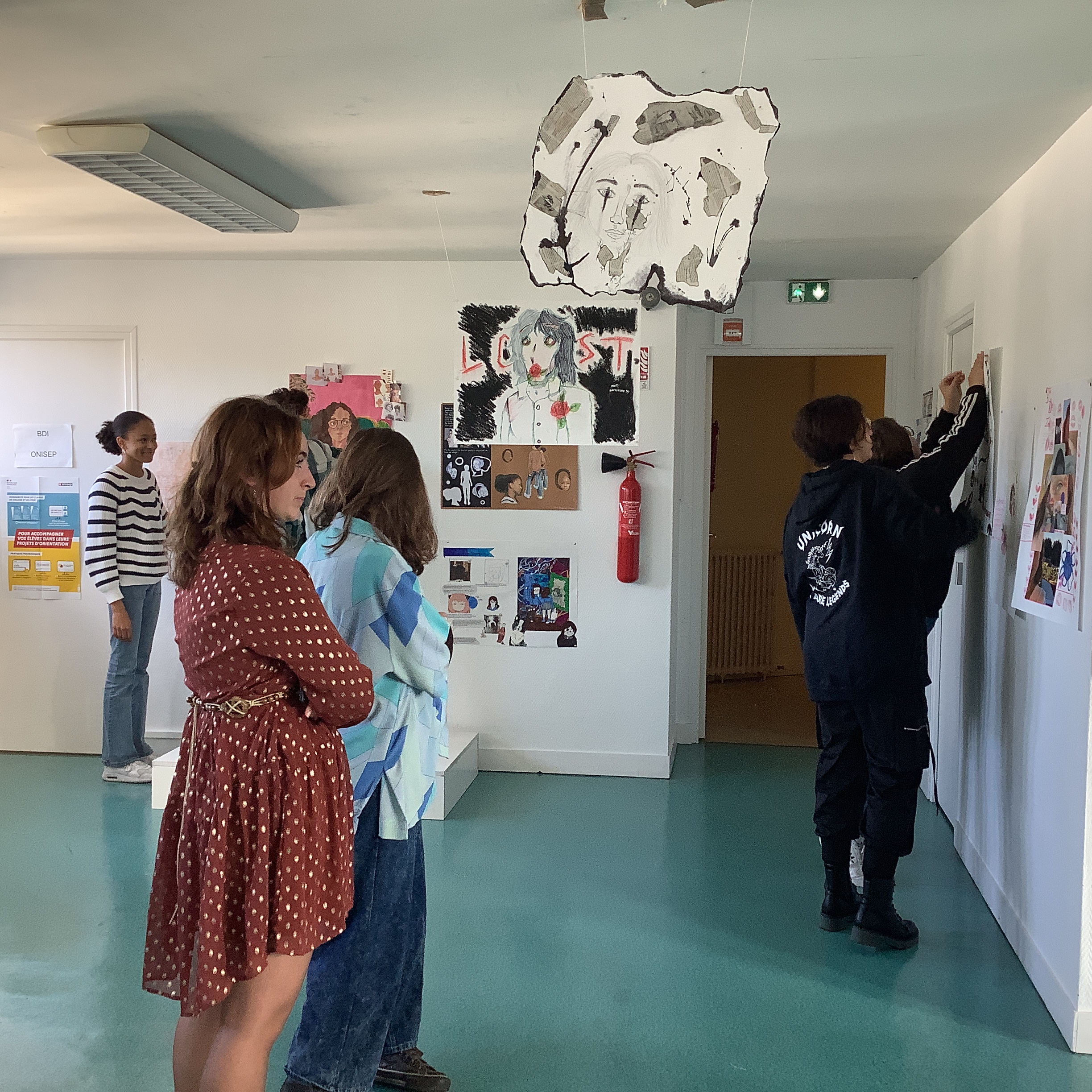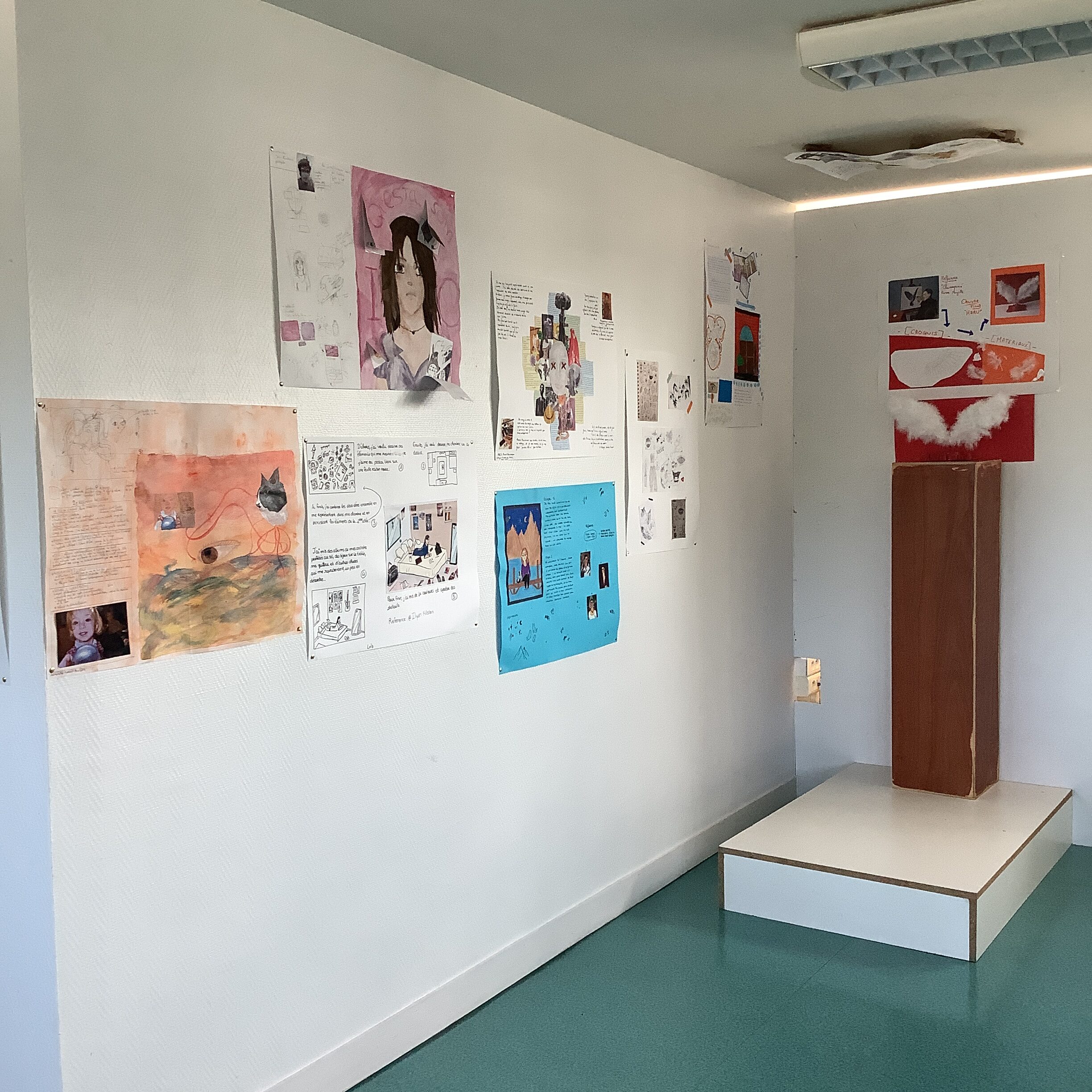 Les élèves de l’enseignement optionnel Arts Plastiques exposent leurs premières œuvres. Chacun.e propose son autoportrait, sa démarche et sa référence artistique. Le projet consistait à « Se Re-Présenter » et aussi à « Se-Présenter », autrement dit à présenter les élèves de l’option. L’exposition est visible jusqu’aux vacances de Noël.
