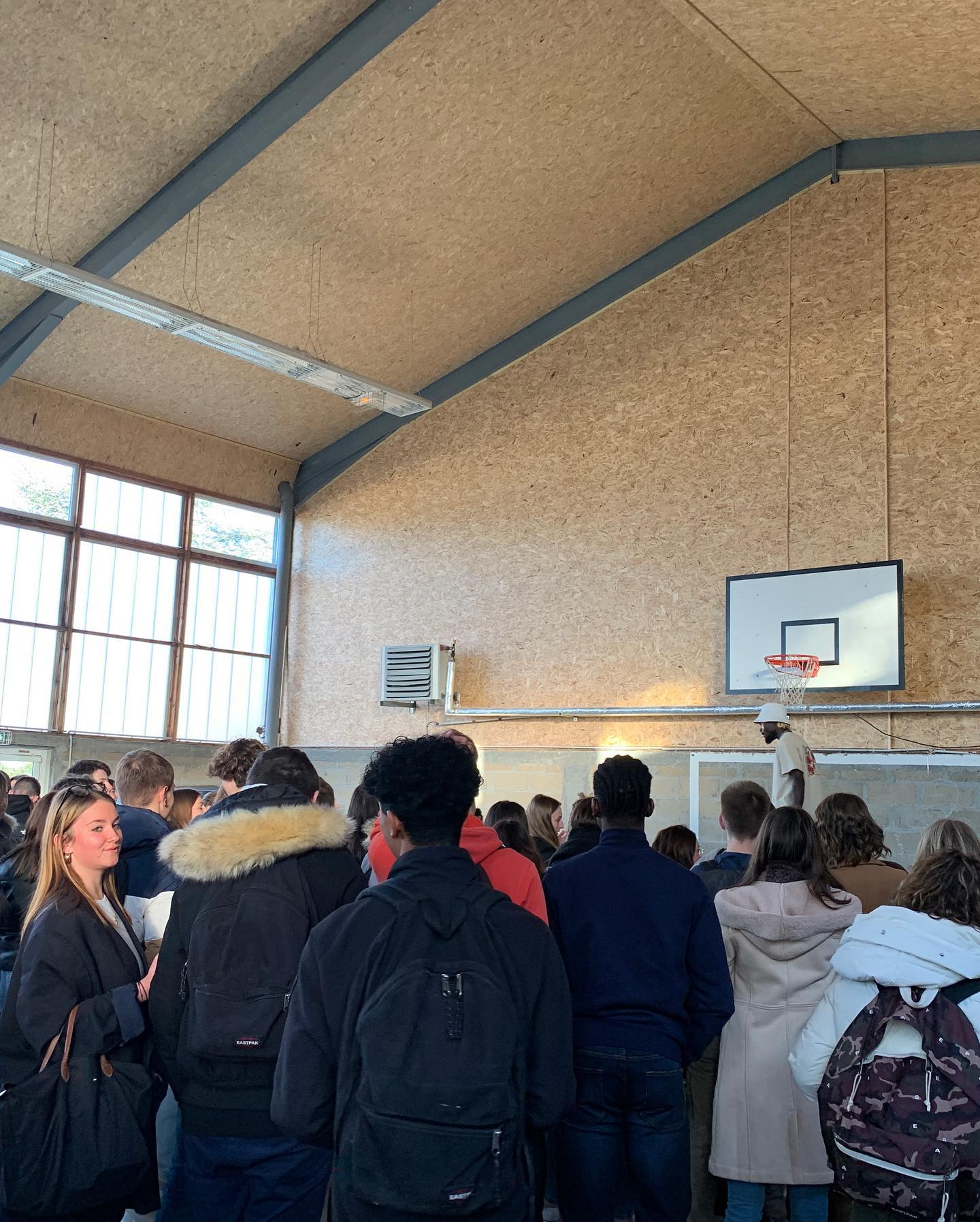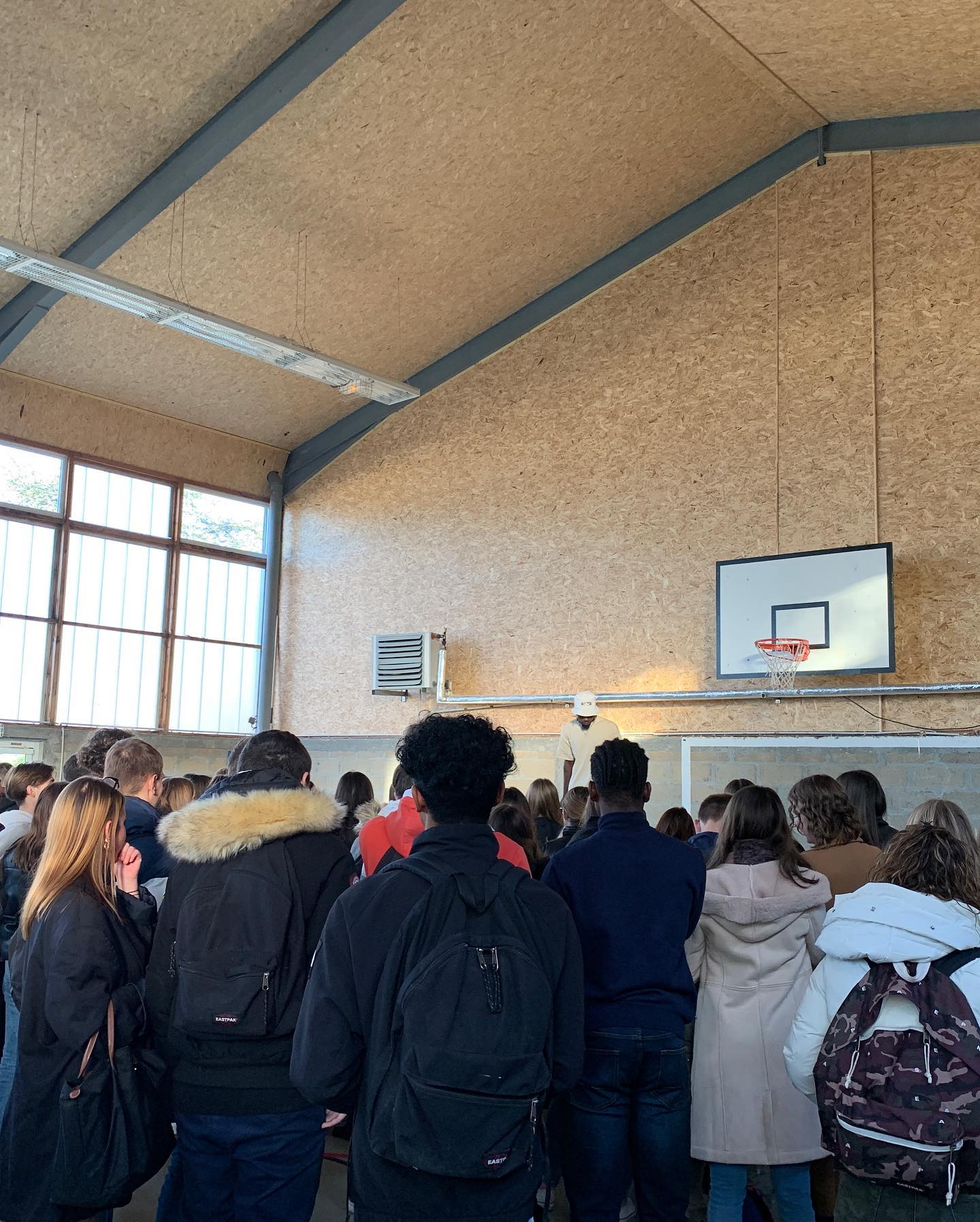 Le vendredi 16 décembre, dernière journée avant les vacances, un chocolat chaud a été servi dans la cours au moment de la récréation. A la suite de ce temps de convivialité, Zacharie, élève de terminale STMG s’est produit devant l’ensemble de la l’établissement. Un moment apprécié de tous.