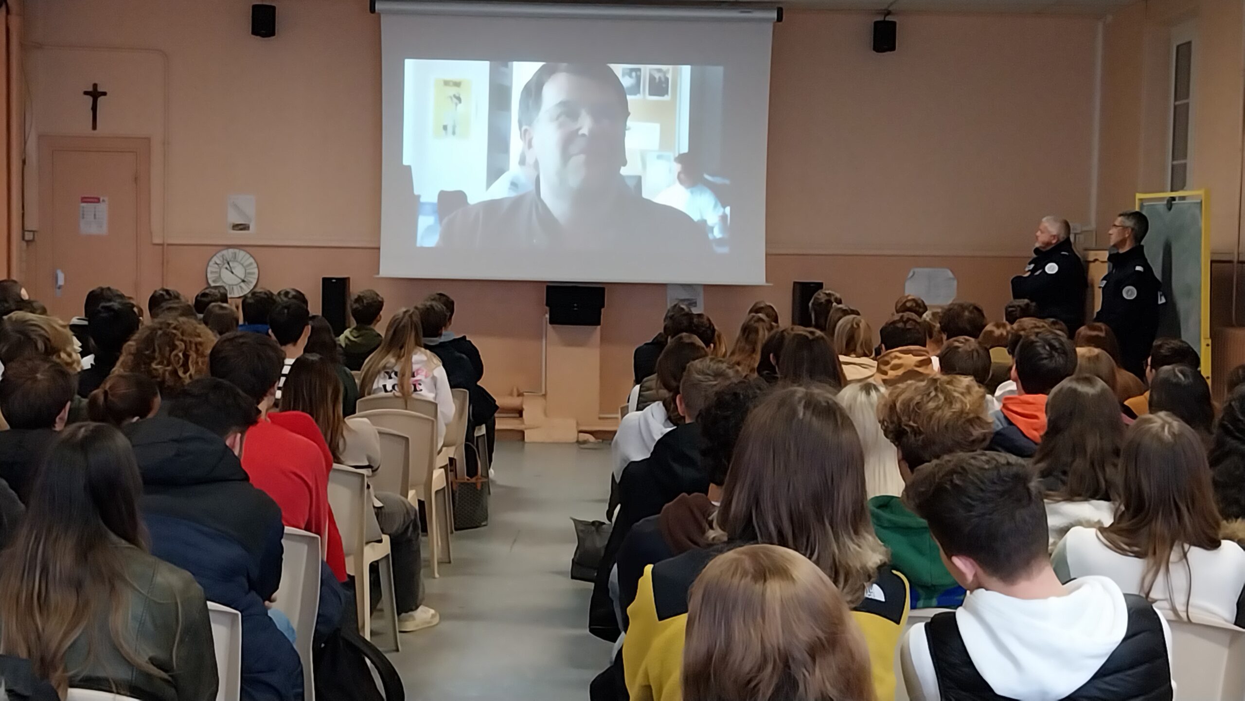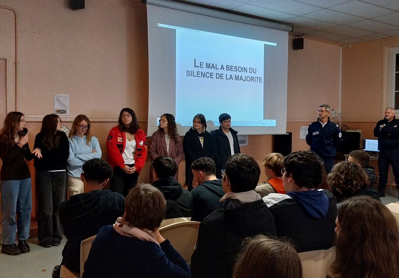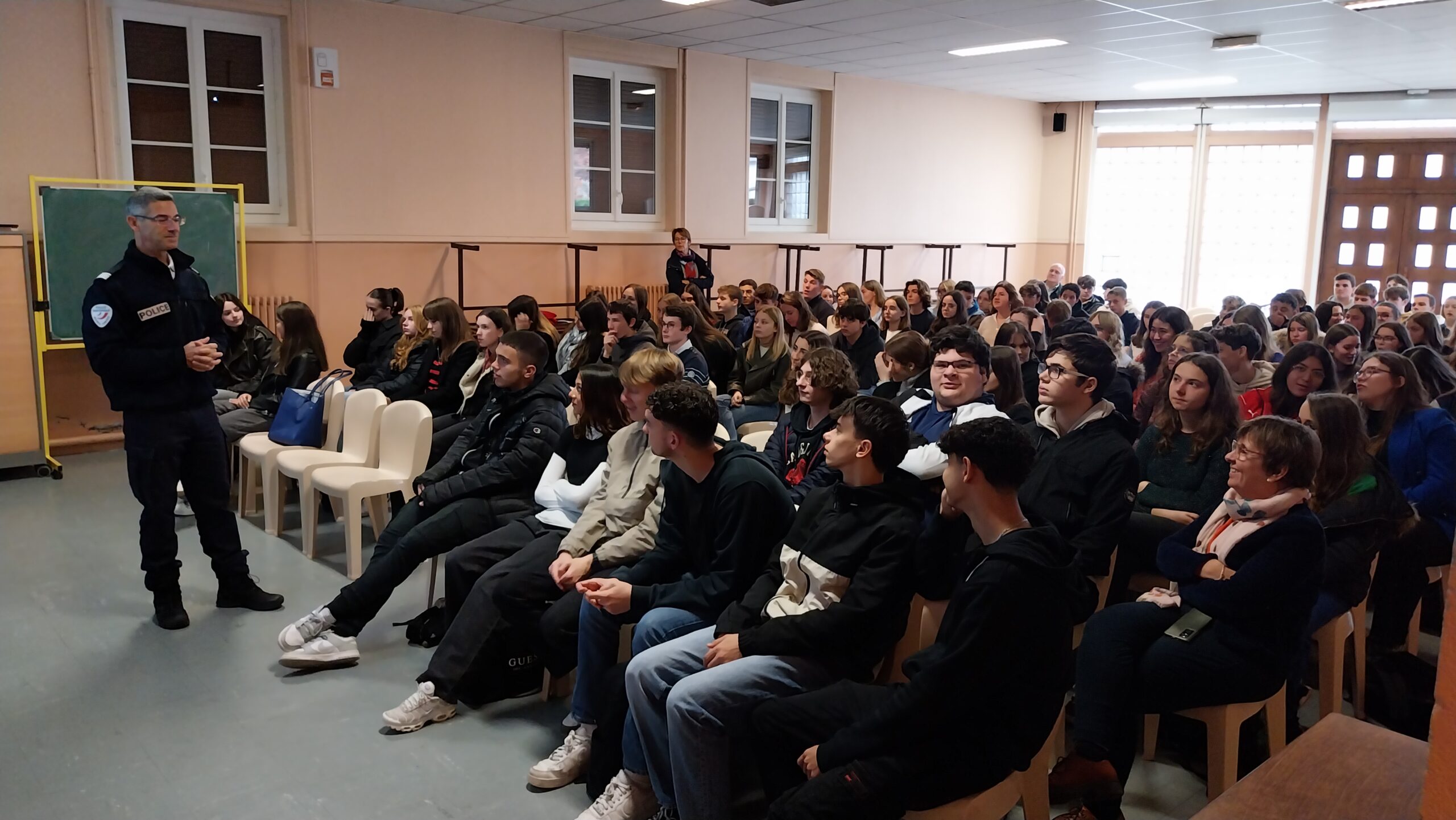Un grand merci aux ambassadrices et ambassadeurs contre le harcèlement, qui ont eu l’idée d’organiser la conférence présentée par le Commandant Meunier et le Major Marie, du commissariat de police. Cette conférence, destinée à tous les élèves de Premières et Terminales, a été l’occasion de rappeler à tous, les dangers et dérives des réseaux sociaux.