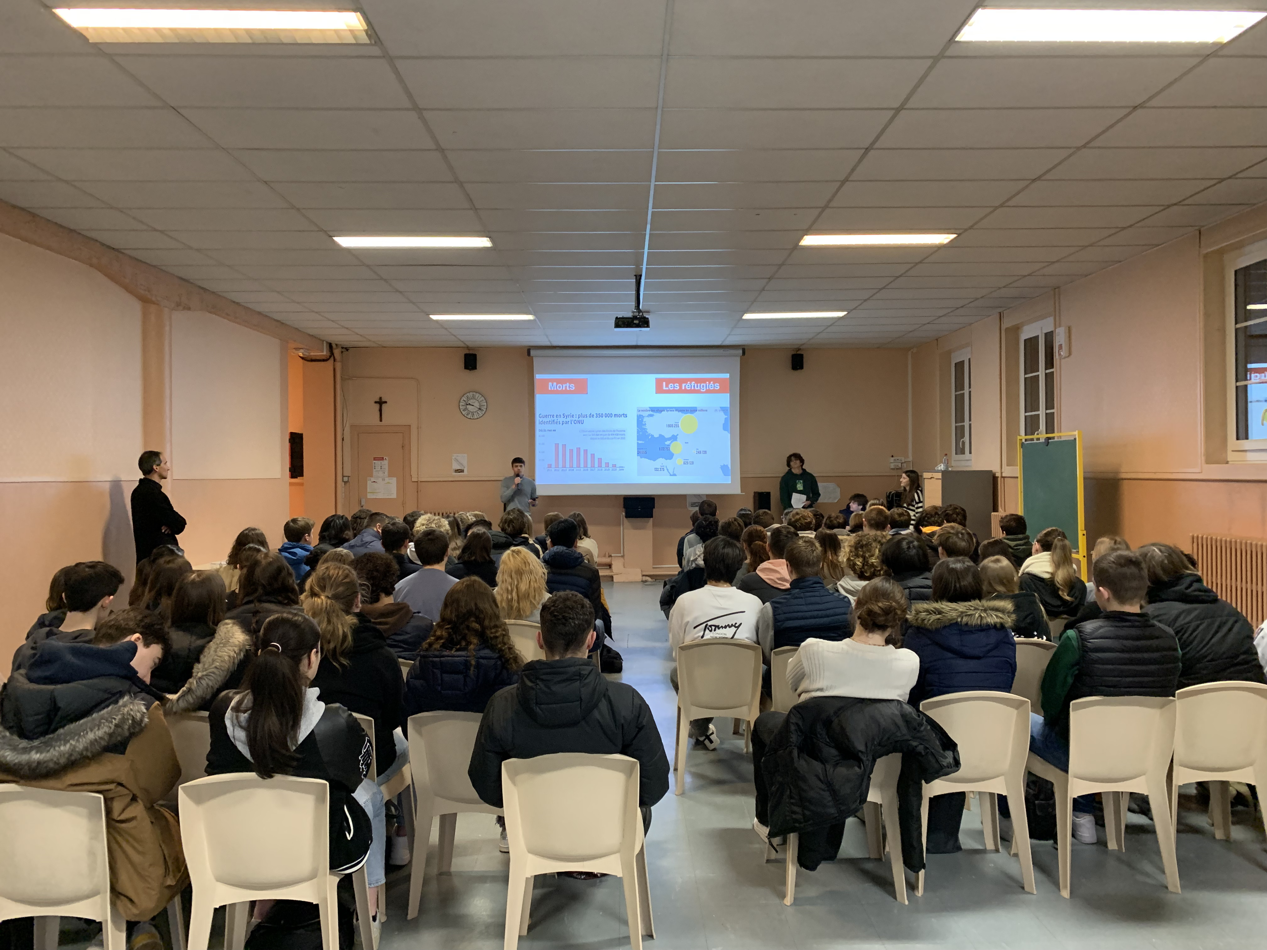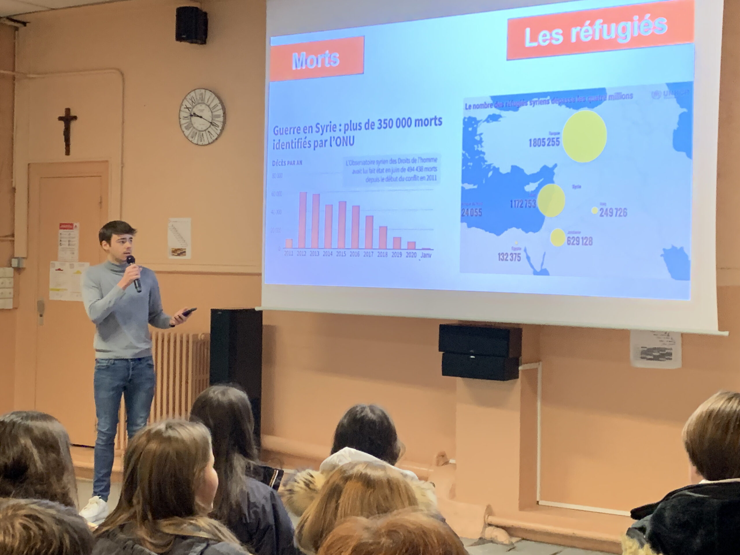A l’initiative de trois élèves de terminale du Lycée Frémont, une action de solidarité sera organisée au bénéfice de l’Association NOUR, Lumière pour la Syrie. Une présentation a été réalisée pour chaque niveau sur les deux sites , par :